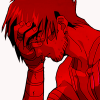 Description: Sketchy drawing of Edward Elric from Fullmetal Alchmiest looking contemplative. The image is tinted in a red hue and has a blank white background.