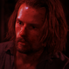 Description: Screenshot image of Captain Boyd from 1999 film Ravenous with a concerned expression and minor injuries on his face. The image is tinted in a red hue.