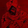 Description: Screenshot image of Marvel comic character Moon Knight with tattered clothes. The image is tinted in a red hue.